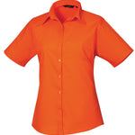 A ladies short sleeved Poplin blouse with semi fitted styling, available in 30 colours. The blouse features soft collar styling with bust and back darts and a rounded bottom hem for an attractive piece of workwear for women.