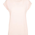 The women's extended shoulder tee from Build Your Brand offers a round-neck line, small rib cuff, extended shoulders and turn-up sleeves. This combination of features creates a sporty and trendy look. The light single Jersey and long cut ensure a comfortable fit. This product is ideal for rebranding, print and embroidery. This item is manufactured in a FAMA Certified factory. FAMA stands for Facility and Merchandise Authorisation and is a high standard production certificate. . Reach certified. FAMA certified.