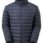 Reverse coil zip on centre front with signature zip pull. Horizontal sandwiched baffles on front and back body, with vertical baffle feature at the side seams. Internal binding on all seams. Concealed zip pockets with stretch binding around collar, cuffs and hem for added protection. Internal pockets. Internal storm flap with chin guard. Product contains no branded neck label.* Removable Kimble or looped garment tags. Inner seam label holds important product information on one label with a second label containing brand information which can be cut-away.
