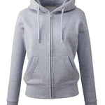 At Anthem we pride ourselves and our styles on three main values: ethically sourced, high quality fabrics and ideal for the imprint market. All these characteristic can been found in our women’s Anthem full-zip hoodie. This incredibly soft-feel style is created with organic cotton, with the addition of recycled polyester in our marl colours. Twin-needle detailing throughout with high quality finishes and a concealed zip make this style perfect for print.