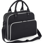 Retro styling. Detachable adjustable shoulder strap. Zippered main compartment. Zippered front pocket. Internal mesh pocket. Internal baseboard. Self-fabric carry handles. Reach certified.