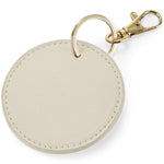 Personalise your Boutique collection with these interchangeable and customisable key clips. Designed for ease of decoration, this 100% leather-look design can be used as a keyring or bag charm. Fine grain Saffiano fabric gives a luxurious finish, while a high-shine, gold metal key clip adds to the premium quality. Also available in rectangular (BG744) and heart-shaped (BG746) styles.
