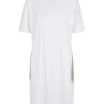 With an urban look, plus an extra touch of casual, this eye-catching dress employs a straight, oversized cut. The upper body area is strongly reminiscent of a relaxed tee and, from the hips, is slit on the right, which heightens both wearer comfort and visual appeal. The dividing seam is at waist level and the shoulders are dropped. The dress can further be refined via embroidery or print options.