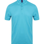 Modern fit wicking men's polo shirt with added stretch. Lightweight micro-fine piqué with a short point collar, fitted sleeve and cuffs. Front and back shoulder yolk detail. Micro-fine piqué is ideal for printing and embroidery. 3-button placket, dyed-to-match buttons. Henbury cut-out back neck brand label. Henbury cut-out back neck brand label. Wicking finish for added performance. BSCI certified. SEDEX certified.