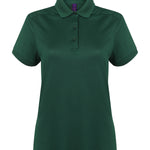 Modern fit women's wicking polo shirt with added stretch and shaped side seams. Lightweight micro-fine piqué with a short point collar, fitted sleeve and cuffs. Front and back shoulder yolk detail. Micro-fine piqué is ideal for printing and embroidery. 3-button placket with dye-to-match buttons. BSCI certified. SEDEX certified.