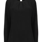 Pleat front blouse. Single button back neck opening. Set-in long sleeve. Slightly gathered sleeve at cuff with keyhole opening and button fastening. Slightly curved hem. Fabric contains easy care, wicking, anti UV, quick-drying properties. WRAP certified. BSCI certified. SEDEX certified.