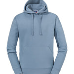 Ultra contemporary hooded sweatshirt in premium 3 layer fabric for a fuller, more substantial and luxurious handfeel. Coverseamed armholes, cuffs and hem. Coverseam around hood. Herringbone neck tape. Flat, chunky drawcords. MP3 access. Buttonhole eyelets. Front facing shoulder seams. Premium finishing. Part of the Russell sweatshirt family that continues to perform wash after wash. WRAP certified.