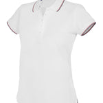 100% cotton piqué. 5 button placket. Contrast taped neck and side vents. Flat knit rib with contrast tipping at neck and cuffs. Twin needle finishing. Oeko-Tex certified.