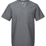 Men’s short sleeve scrub tunic. Comfortable four-way stretch. Breathable, easycare, crease-resistant fabric. V-neck, centre patch pocket with combined pen pocket. Back darts, side vents and modern fit. Decorate with embroidery and/or print. Washable to 40?C. Low tumble. Contains recycled polyester. Amfori BSCI and RCS certified.