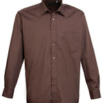 A men’s long sleeved classic fit Poplin shirt available in 27 colours from the Premier 'Colours Collection.' This classic work shirt has a stiffened formal cut collar which accommodates a ties perfectly. The left breast pocket and self-fabric buttons down the placket and cuffs makes for a smart and stylish everyday shirt which carries Premier's easy care label.