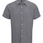 A short sleeve shirt with soft collar styling. Two colour Microcheck gingham style pattern. Semi-fitted styling. WRAP certified. BSCI certified. Reach certified. SEDEX certified.