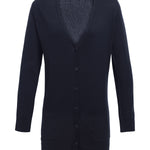 Ladies can layer up in style with this fashionable long-length knitted cardigan. Reflecting the latest high street trends for cosy knits, this cotton rich ladies cardigan can be worn loosely over a blouse or fastened up with buttons. The ribbed knit plunging v-neck, cuffs and hem make for a comfortable fit offering excellent shape retention.