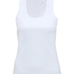 Wicking fabric. Stretch. Scoop neck. Racerback. Hip length hem. Mesh panel on the upper back. Lightweight. Contrast trim details around the straps, arm holes and across the back. Loop detailing for headphones. BSCI certified. SEDEX certified. WRAP certified. We recommend using block out vinyl and inks.Product contains no branded neck or waist label.* Removable Kimble or looped garment tags. Inner seam label holds important product information on one label with a second label containing brand information which can be cut-away.