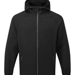 Reliable 2-layer bonded softshell jacket with hood. Full-length zip with storm flap and chin guard. Three-panelled hood with adjustable toggles. Two front zipped pockets. Elasticated cuffs. Raglan sleeves. Shaped to fit. Inner hem with adjustable toggles. Showerproof. Windproof. Two inside pockets. Easy re-label system. Product contains no branded neck label. Removable Kimble or looped garment tags. Inner seam label holds important product information on one label, with a second label containing brand information which can be cut away.
