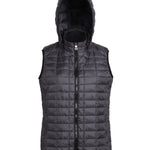Contrast coil zip on centre front with signature zip puller and mouse tail piping on each side of zip opening. Front and back square stitched baffles with linear side narrow baffles. 250gsm lightweight polyester fill. Fully-lined in tonal polyester. Inset welt pocket with concealed zip opening and double zip garages. Contrast stretch binding on hem, armholes and hood opening. Internal piping around inside facing. Secure hood attached to collar. Internal welt pocket. Internal zipped opening on back panel for embroidery access. Product contains no branded neck label.* Removable Kimble or looped garment tags. Inner seam label holds important product information on one label with a second label containing brand information which can be cut-away.