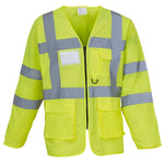 YOKO high visibility executive vest is a success. This long sleeved version is also manufactured from top quality high visibility components following the request of many customers who need the full class 3 motorway specification and also need a smart, light and flexible comfortable fit of the waistcoat fabric.
