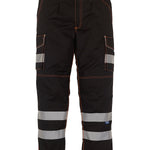 Hi Vis Yellow & Orange conform to EN ISO20471:2013 Class 1. and Orange also conforms to RIS-3279-TOM. Black & Navy provide an enhanced visibility for safety. 80/20 Polycotton fabric treated with durable water repellent finish. Two 5cm width 3M reflective tapes on the bottom of each legs. Partly elasticated waistband with 5 belt loops. Match-colour zip fly & button. Two cargo pockets with extra reflective tape & border trimming to enhance the visibility. Knee pads pocket with concealed access. Rear pocket with button fastening.