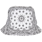Bucket hat in a trendy bandana-style print, made of cotton and polyester, slanted brim with decorative seams running across. BSCI certified. Reach certified. SEDEX certified. WRAP certified.